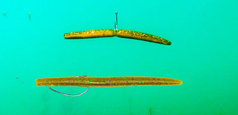 Note: these are both considered “weightless”, since they don’t add any additional weights to make it sink faster. This is something you can experiment with, especially if you’re in much deeper water and want to reach the bottom quickly.